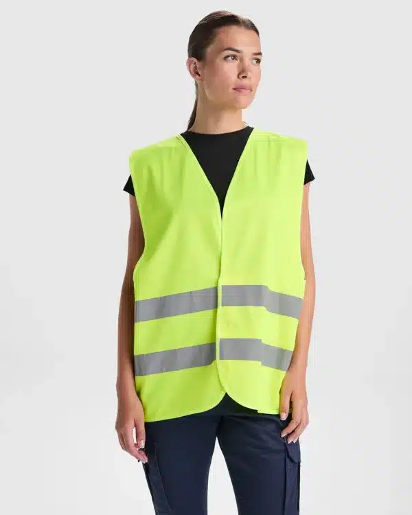 Chaleco alta visibilidad de cuello pico.